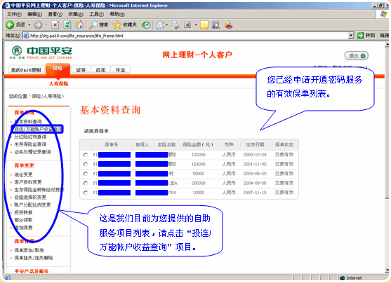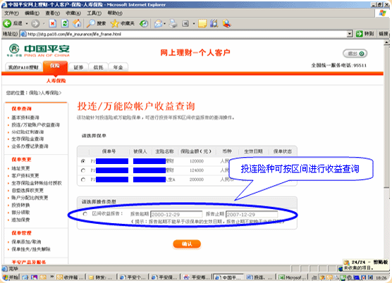 PA18网络自助服务操作简介——投连/万能帐户收益查询