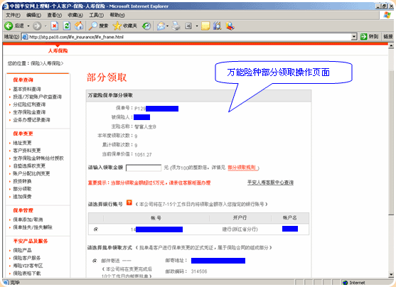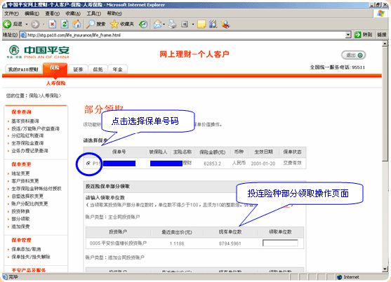 5.选择您需部分领取的保单,投连保单直接进入操作页面: