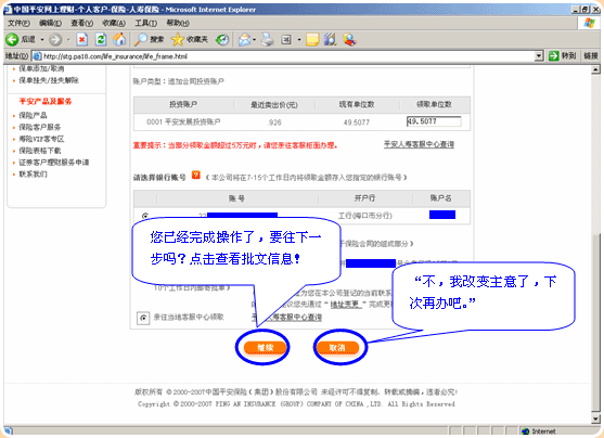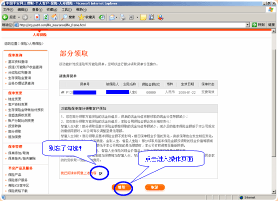 6.万能险保单,请您阅读须知内容并勾选同意框后进入操作页面: