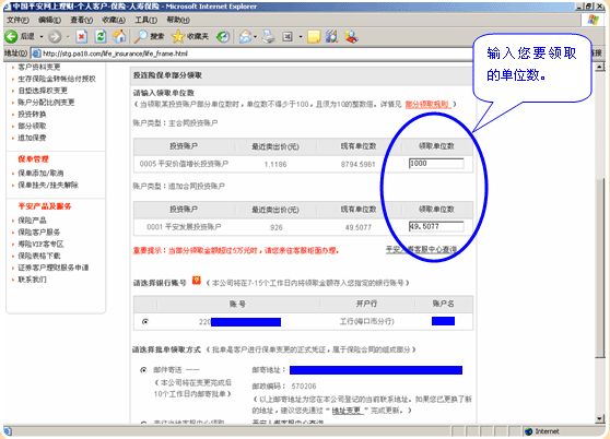 8.请您输入领取单位数,输入规则参照《部分领取规则》: