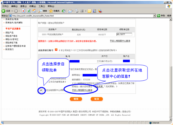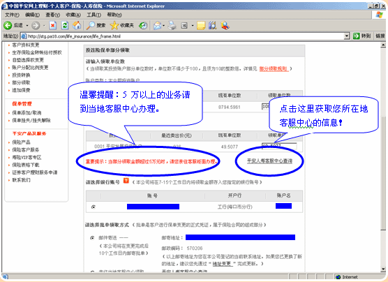 9.5万以上的部分领取业务,请您亲自到当地客服中心办理: