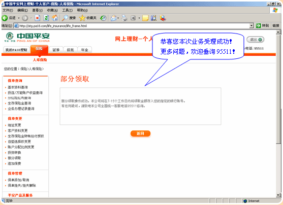 15.确认成功页面,您的本项业务申请完成: