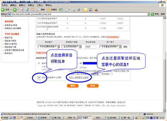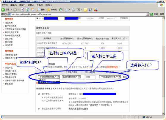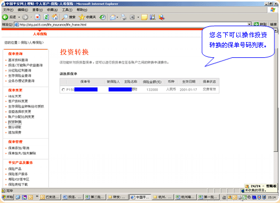 5.选择您需投资转换的保单,进入操作页面: