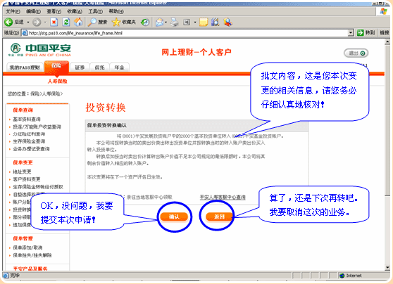 PA18网络自助服务操作简介——投资转换
