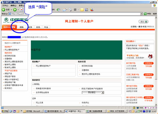 2.密码验证通过后的页面。请选择“保险”按键: