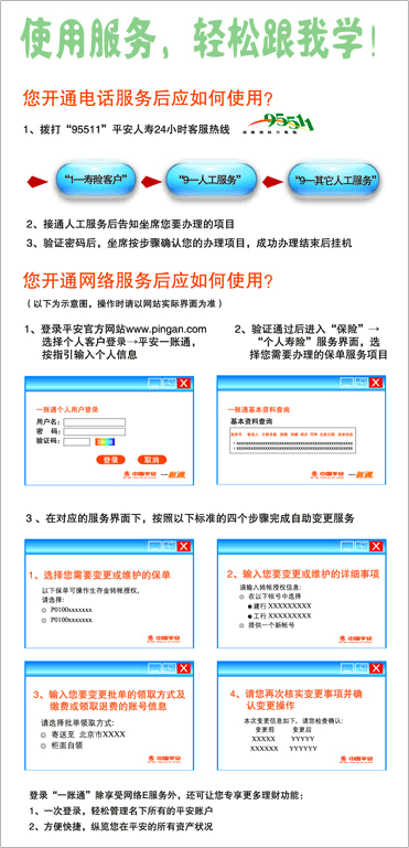 - 方便 申请保单网络服务可让您随时通过网络或电话两种渠道办理如投资账号转换、联系资料变更等20余项业务。
