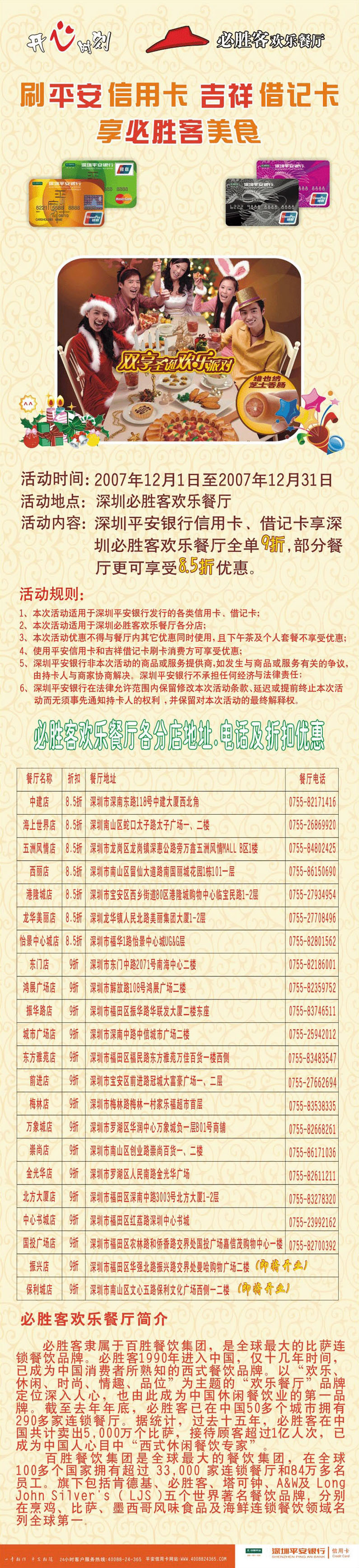 [深圳] 刷平安信用卡 吉祥借记卡 享必胜客美食