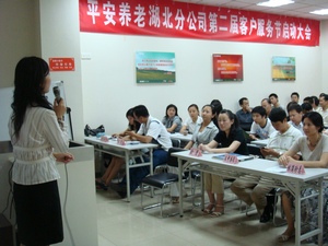 在客服室全体人员的积极筹备下,6月20日,湖北养老险以“特别夕会”的形式召开了题为“您的平安、我们的追求”2008年第二届客服节的启动大会,公司全体内外勤人员以积极的心态、饱满的精神参加了本次启动大会。
