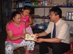 得到公司礼物的这位客户是一位经营食杂店的生意人,平时起早贪黑,忙忙碌碌,积蓄些钱,为解决自已的后顾之忧,在平安买了几份保险。令她惊喜的是,投保后,平安时时惦记着她,每到年节,小王都来家里拜访,这次还送来了一份健康的祝福。王帷涛告诉客户,为客户服务是公司的职责,并提醒这位大姐做生意时不要忽略了身体健康。客户很受感动,人到中年,自已忽略的恰是人生最重要的,也是平安最惦记着的,庆幸自己在这样一个业务素质佳,服务水平高,并有社会责任感的公司投保,对平安这样细致入微的服务表示感谢。
