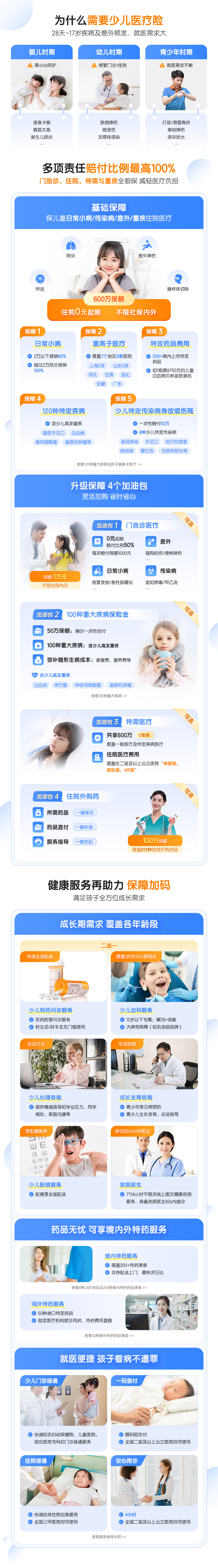 | 少儿门急诊医疗 | 每次门急诊赔付限额为“意外和疾病门急诊、自费门急诊医疗”合计1000元 | |