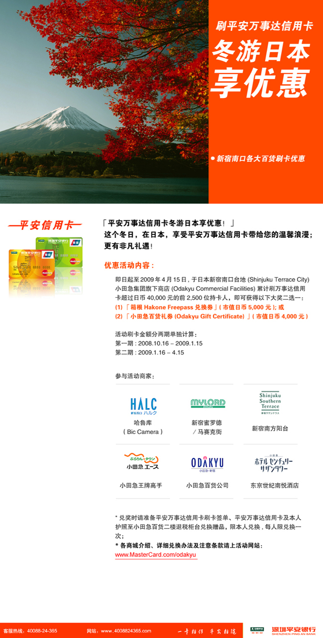 刷平安万事达信用卡,冬游日本享刷卡优惠
