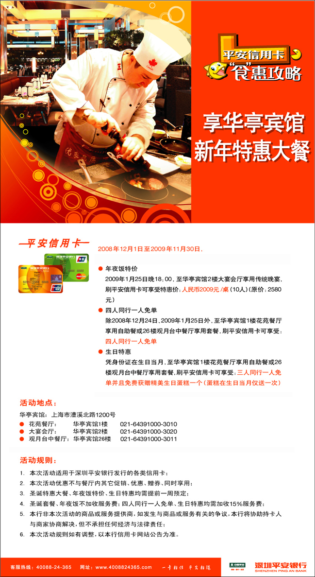[上海] 刷平安信用卡,享华亭宾馆新年特惠大餐!