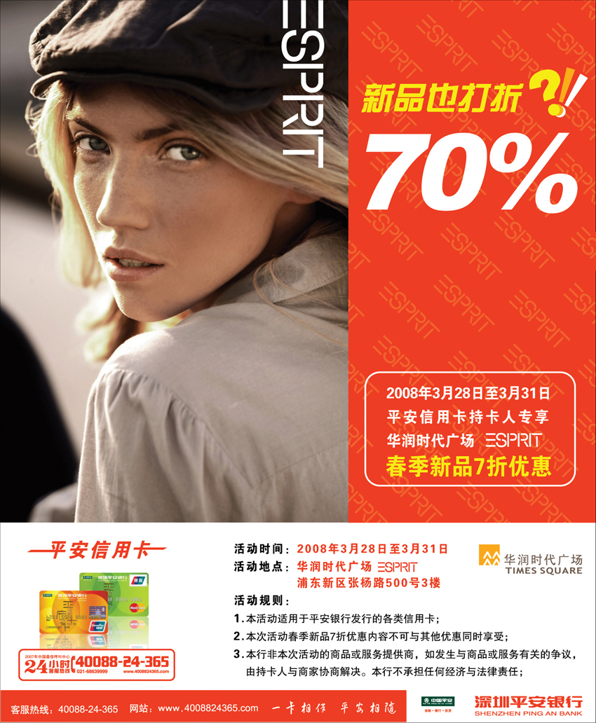 [上海] 刷平安信用卡 享ESPRIT华润时代店新品七折