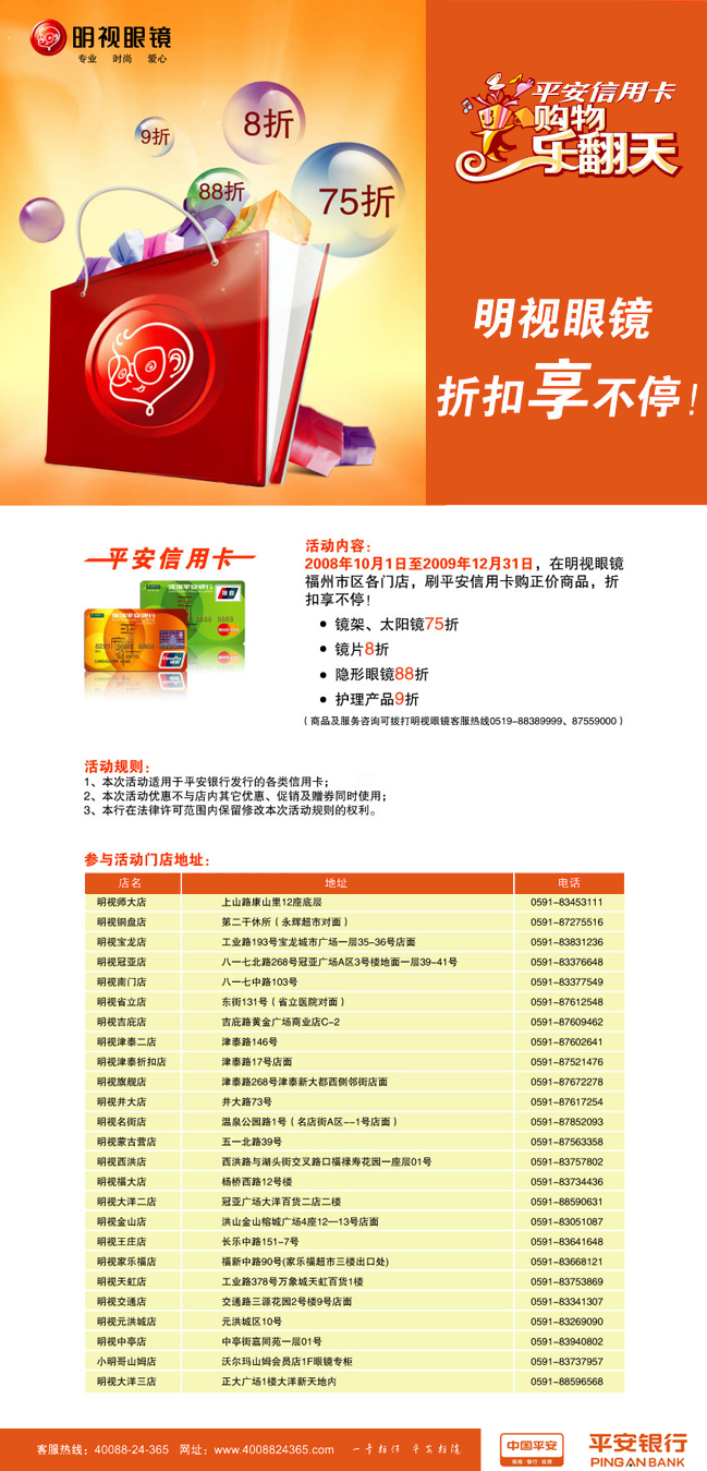 [福州] 平安信用卡明视眼镜购物乐翻天,折扣享不停!