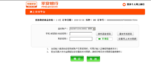 第四步:选择支付账号,输入手机动态密码和卡交易密码,点击确定提交。
