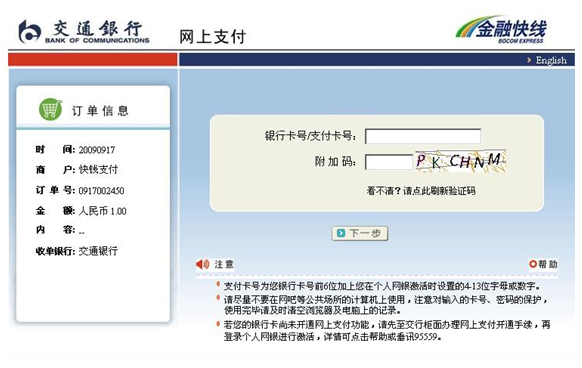 第三步:跳转到交通银行支付页面。输入相关信息提交。