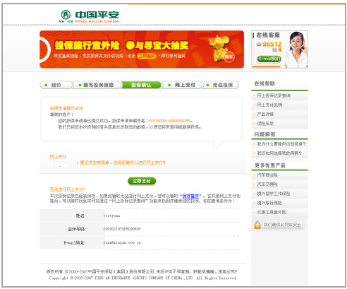 第一步:完成投保,提示可以立即支付;或者登录网上门店找到您的“待支付”保单,选中。