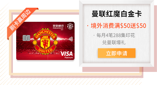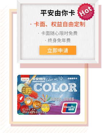 活动期间,申请平安标准信用卡、平安由你信用卡或平安保险金卡的新客户,卡片核发次月底前任意消费满4笔且每笔满288元,即可获赠平安银行定制16寸万向轮登机箱一只。