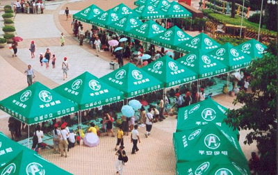 7月13日的广州艺术博物院广场,“平安保险”的彩旗飘飘,“一生还是平安好”的帐篷顶顶,入口处写着“平安保险2002年客户服务节”的巨型拱门分外引人注目。许多市民和晨练的人们都在驻足观看。原来,为了展示广州“三年一中变”的辉煌成果,客服部筹备了一个月的“可爱的广州,我的家——平安儿童现场绘画活动”将在这里隆重举行。