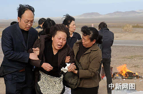 赴美旅游团车祸遇难者亲属在事故现场祭奠逝者